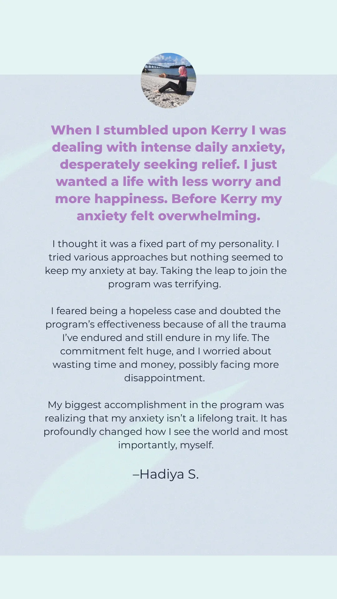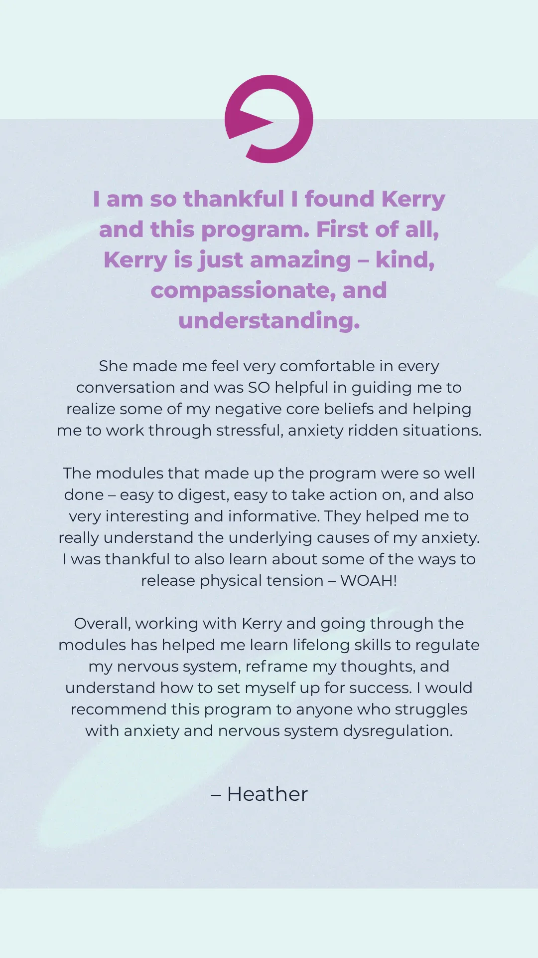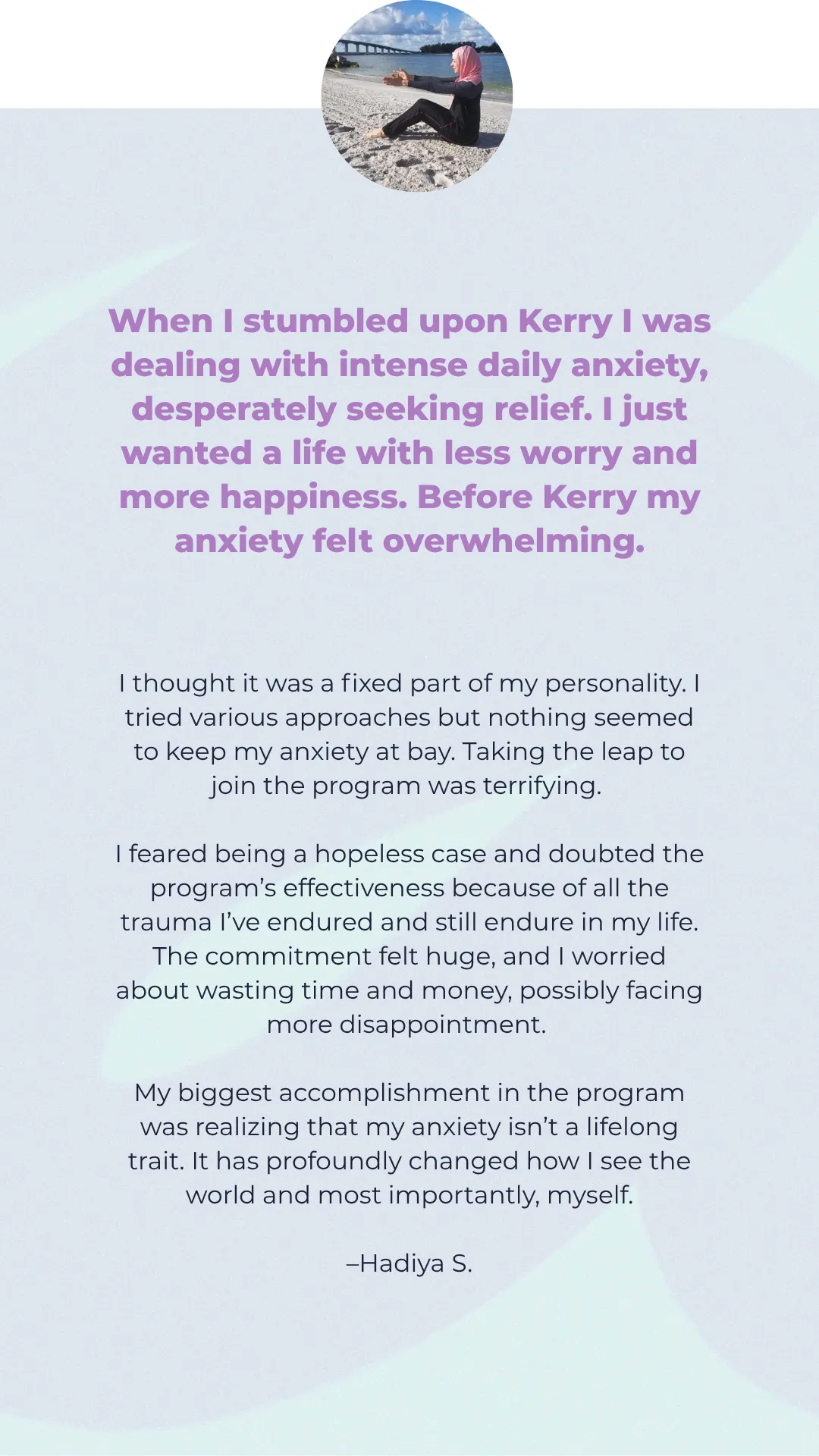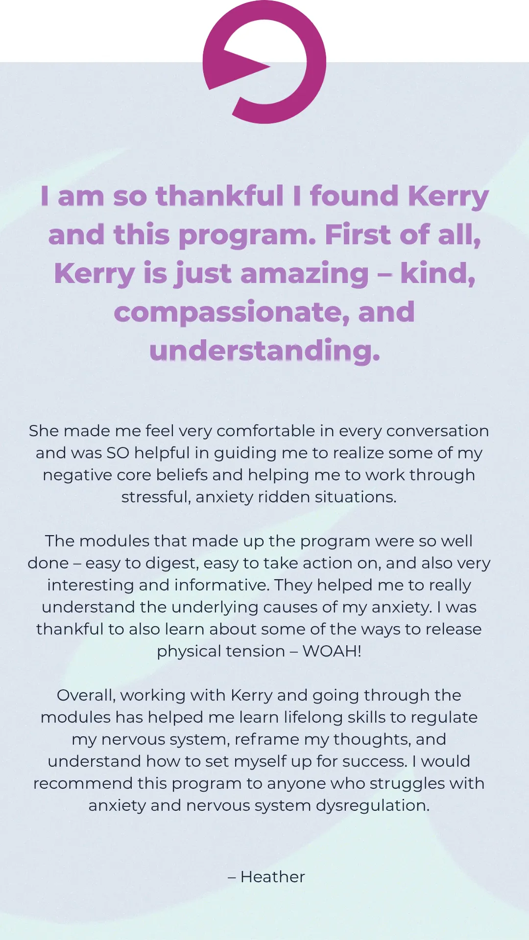 Most anxiety approaches treat it as mental when it's a full body experience. Every specialist treats physical symptoms separately. The reality? Anxiety and physical symptoms are inextricably linked. Nothing is separate. In this program, we address all of it. Your nervous system. Your thoughts. Your body. Your habits, lifestyle, boundaries, and relationships. Everything gets aligned. That's how lasting change happens