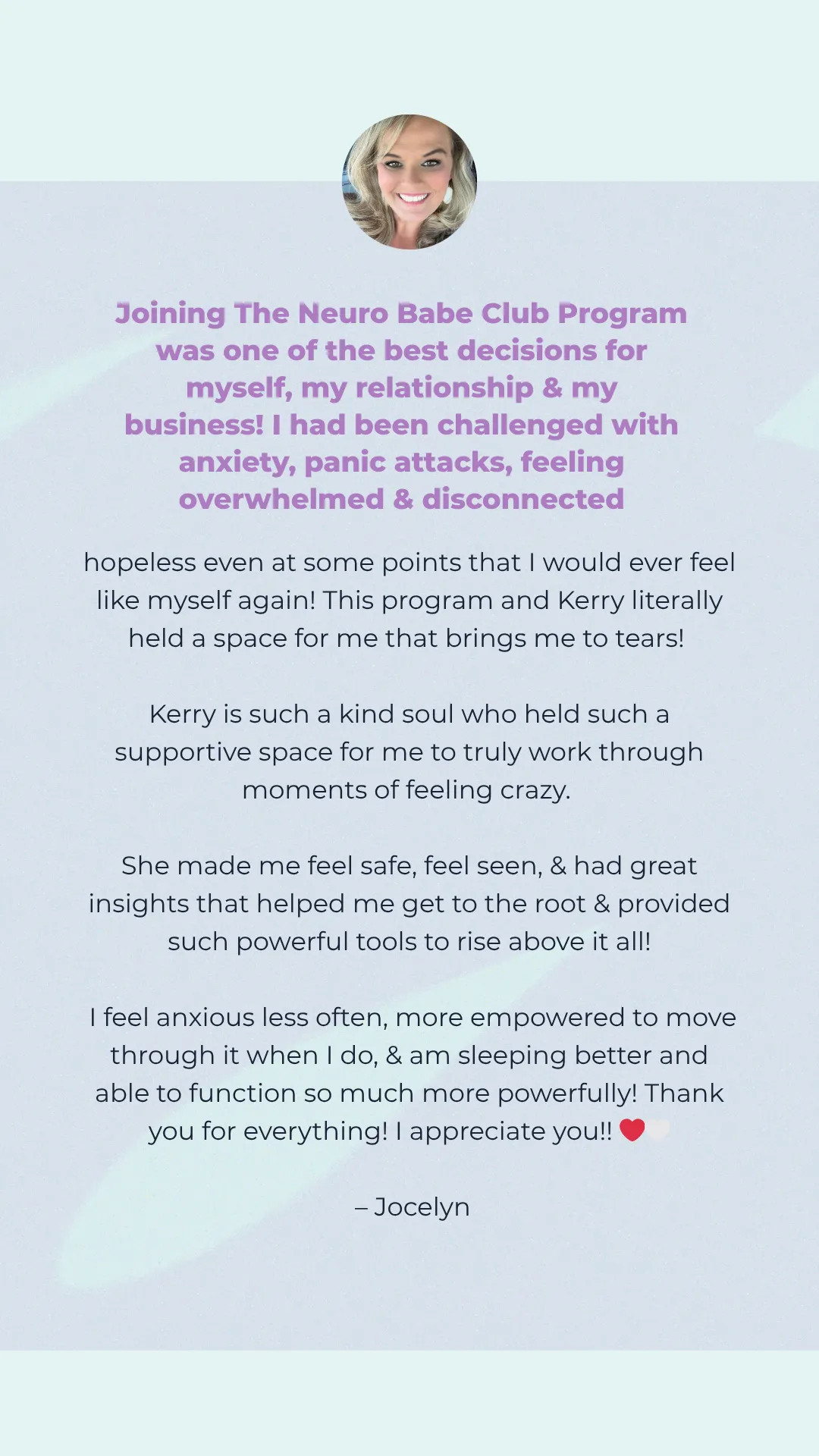 The Neuro Babe Method is designed to produce measurable reductions in anxiety and improvements in HRV when the steps are followed to completion. Your results reflect how you engage with the work.