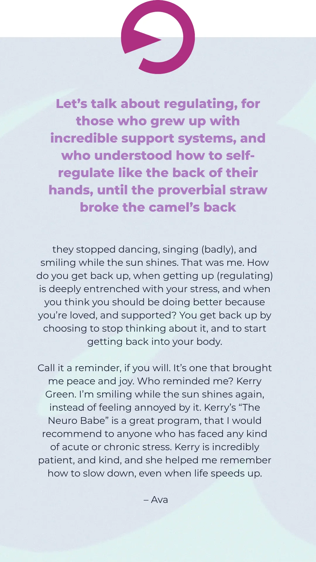 Regulate, rewire, reclaim, resilience. The right tools in the right order. I started teaching women that their mind and body are inextricably linked. Nothing is separate.