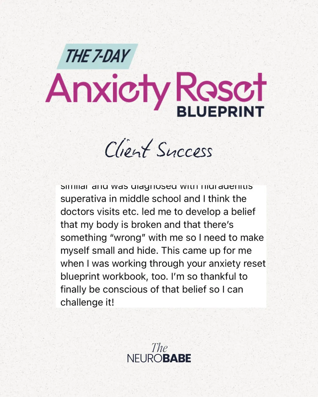 The 7-Day Anxiety Reset Blueprint is the science-backed workbook for ambitious women that doesn't just help you survive anxiety, it teaches you to dismantle it at the root. Because managing symptoms will never give you the freedom you're looking for.